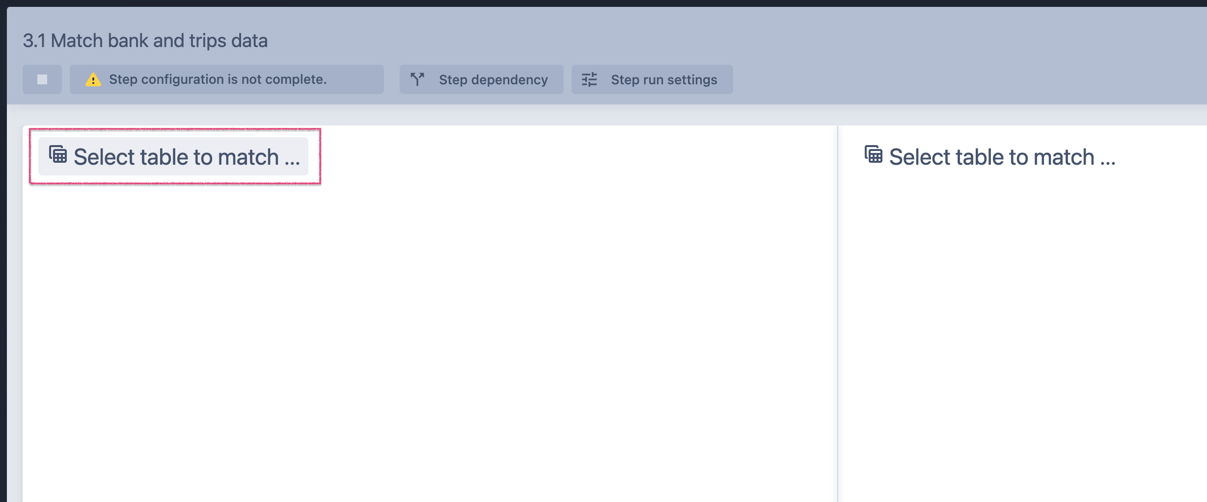 2. Select two tables to match between each other. Click Select table to match.