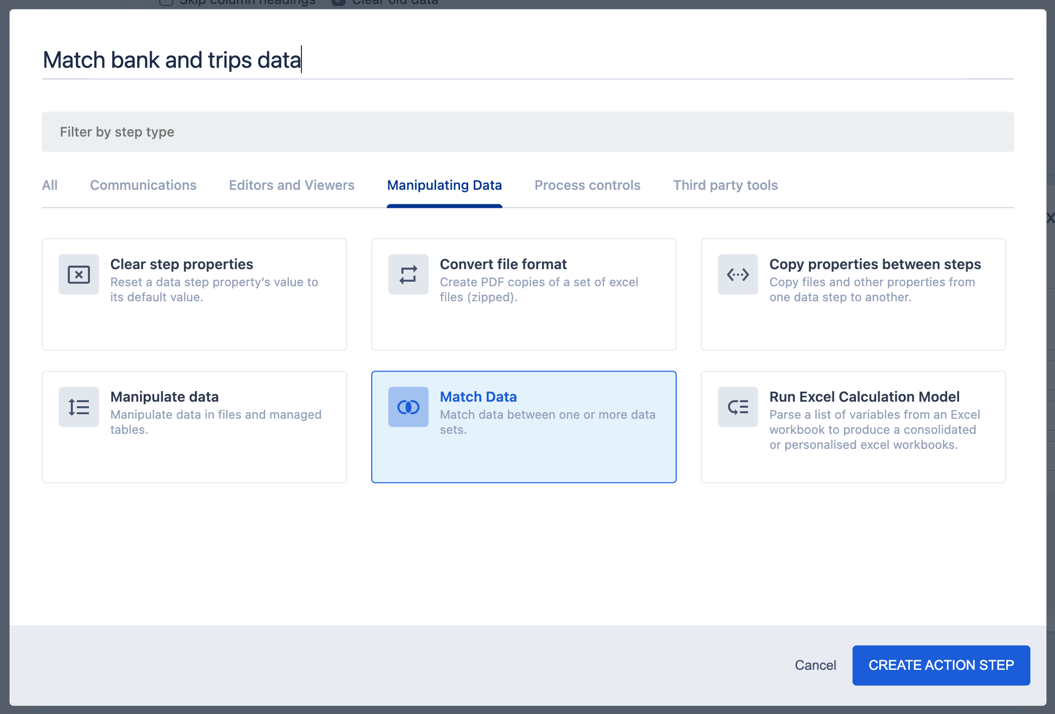 Set up and run the Match Data action step
