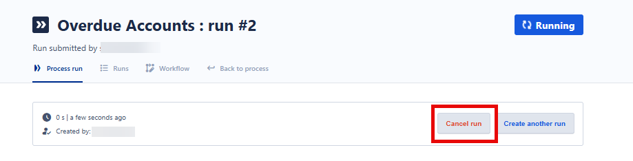 1. Access the process run you want to cancel